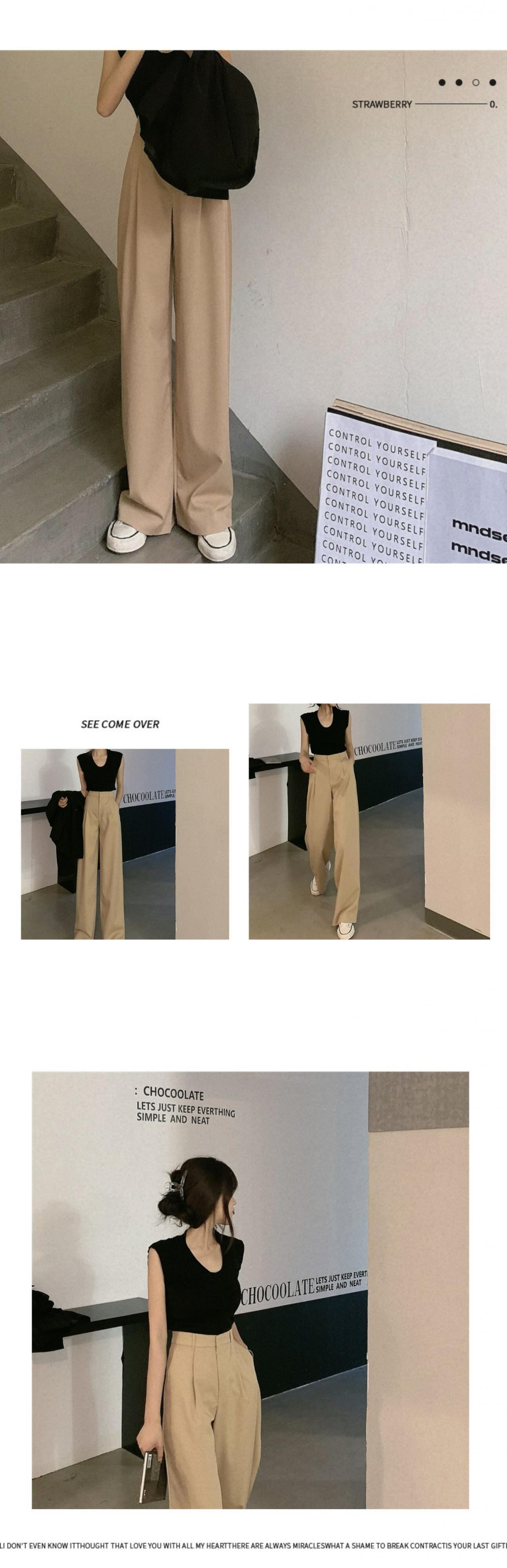 カーキカジュアルスーツパンツレディース秋ルーズワイドレッグハイウエストストレートレッグパンツ ブラックストロベリース42603211398