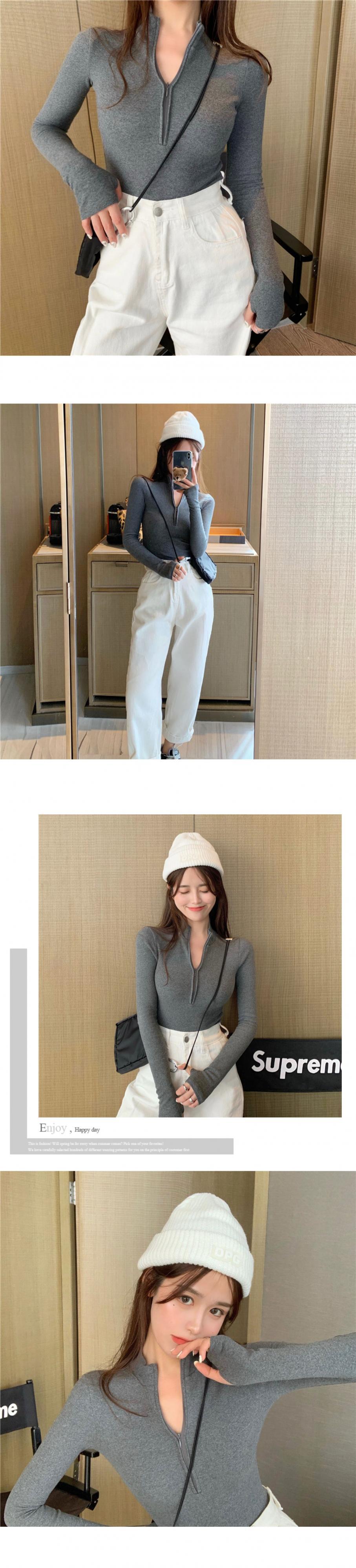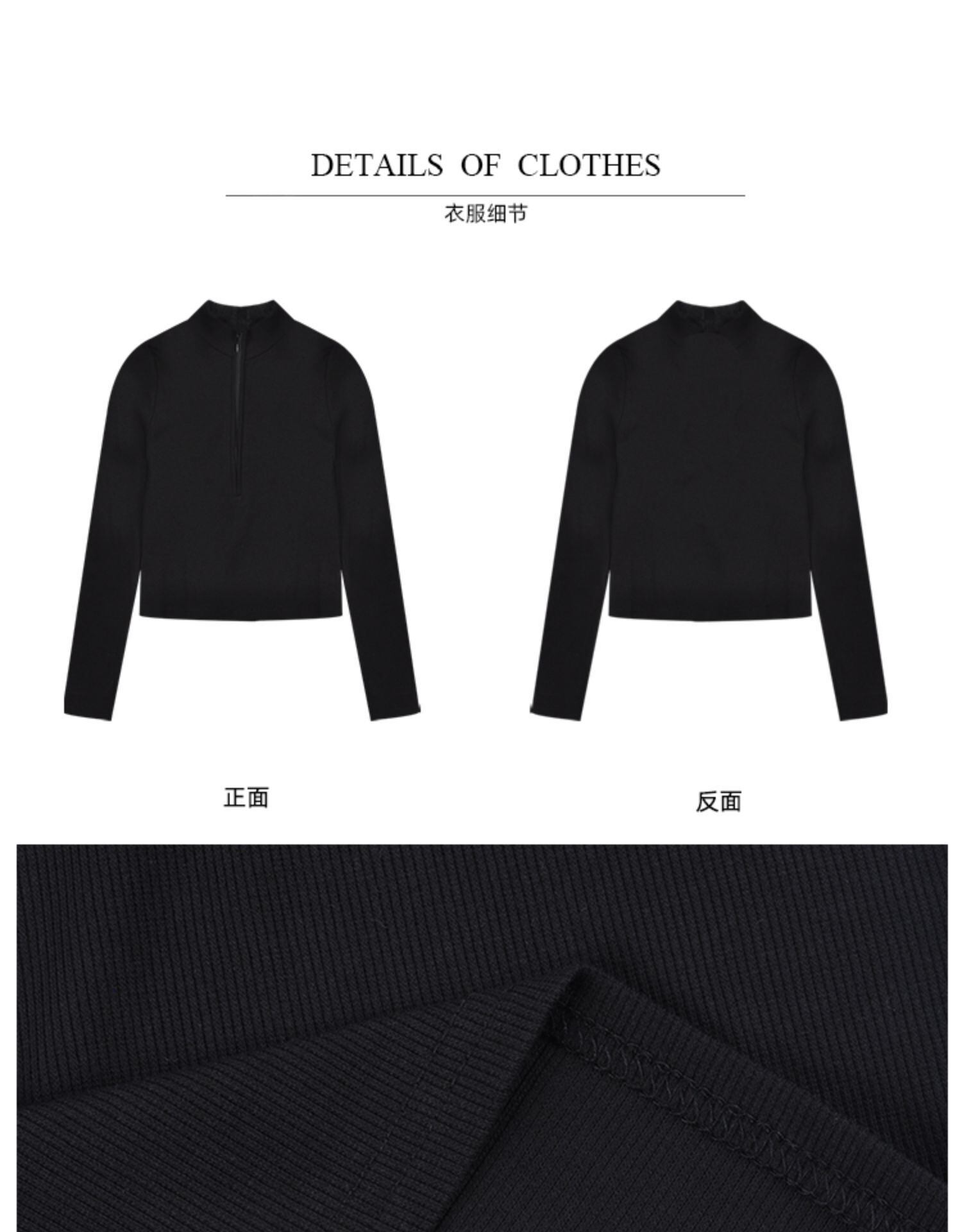 黒の長袖ニットTシャツレディース秋のタイトフィットスリムハーフハイネックボトミングシャツ2020新しいクロップトップ ブラックストロベリース20636306805