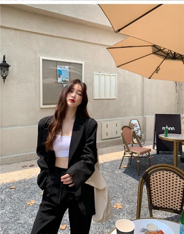 ルーズブラックフライドストリートスモールスーツレディース初秋カジュアルシンスーツ2020新気質ジャケットジャケットのバージョン ブラックストロベリース29024419041