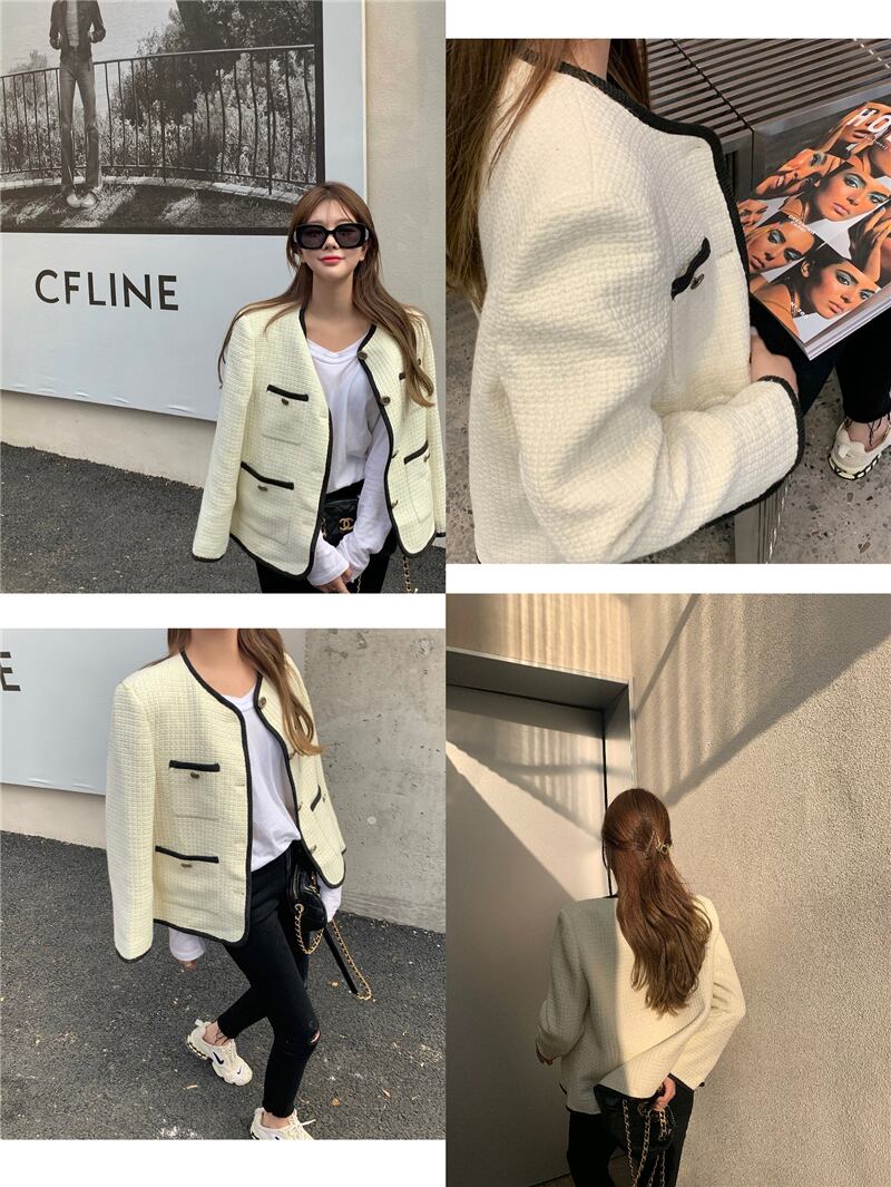 スタイルツイードスモールコートレディース2020年秋新作ルーズ長袖カジュアルトップストレンド ブラックストロベリース42509537814