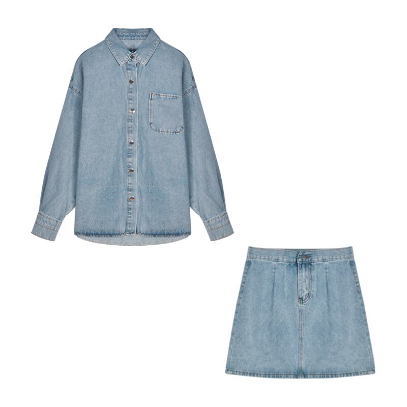 レトロな香港スタイルのルーズデニムシャツジャケット女性秋ミドル丈オールマッチシャツアウターウェア薄い長袖トップス ブラックストロベリース66544522077