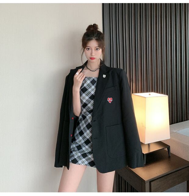 黒の刺繍入りスモールスーツ女性秋バージョンルーズブリティッシュスタイルスーツ2020新しいミドル丈トップコート ブラックストロベリース55288006420