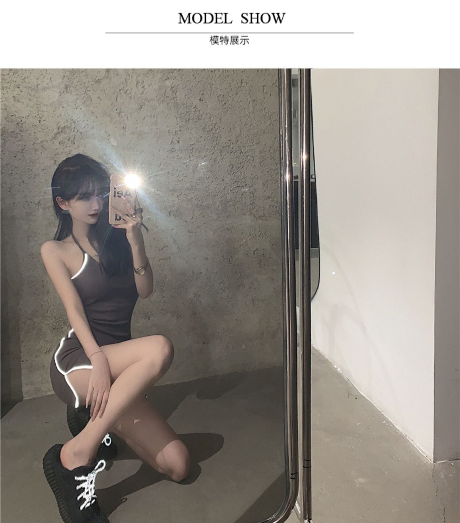 ハンギングネックストラップレスセクシーニットサスペンダードレス女性2020年夏新しいバッグヒップスカート気質ウエストショートスカート ブラックストロベリース90844112780