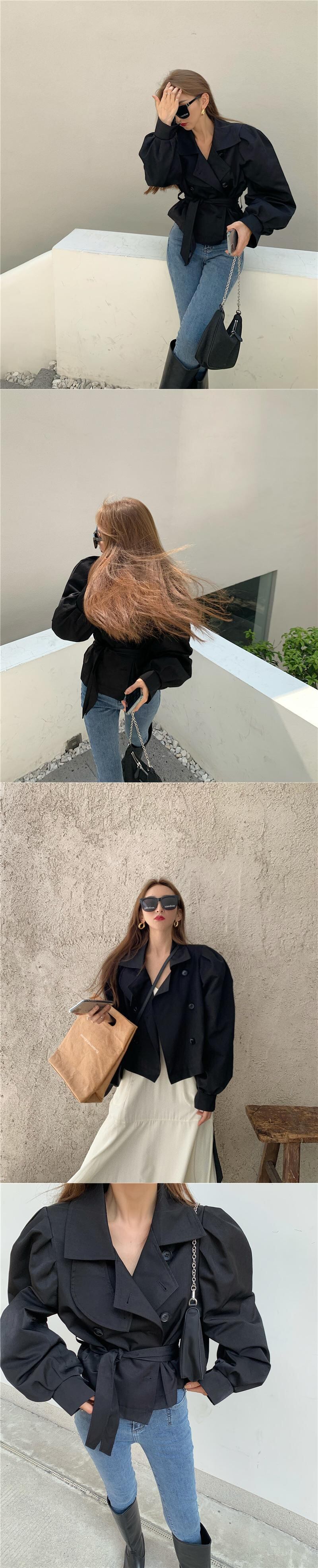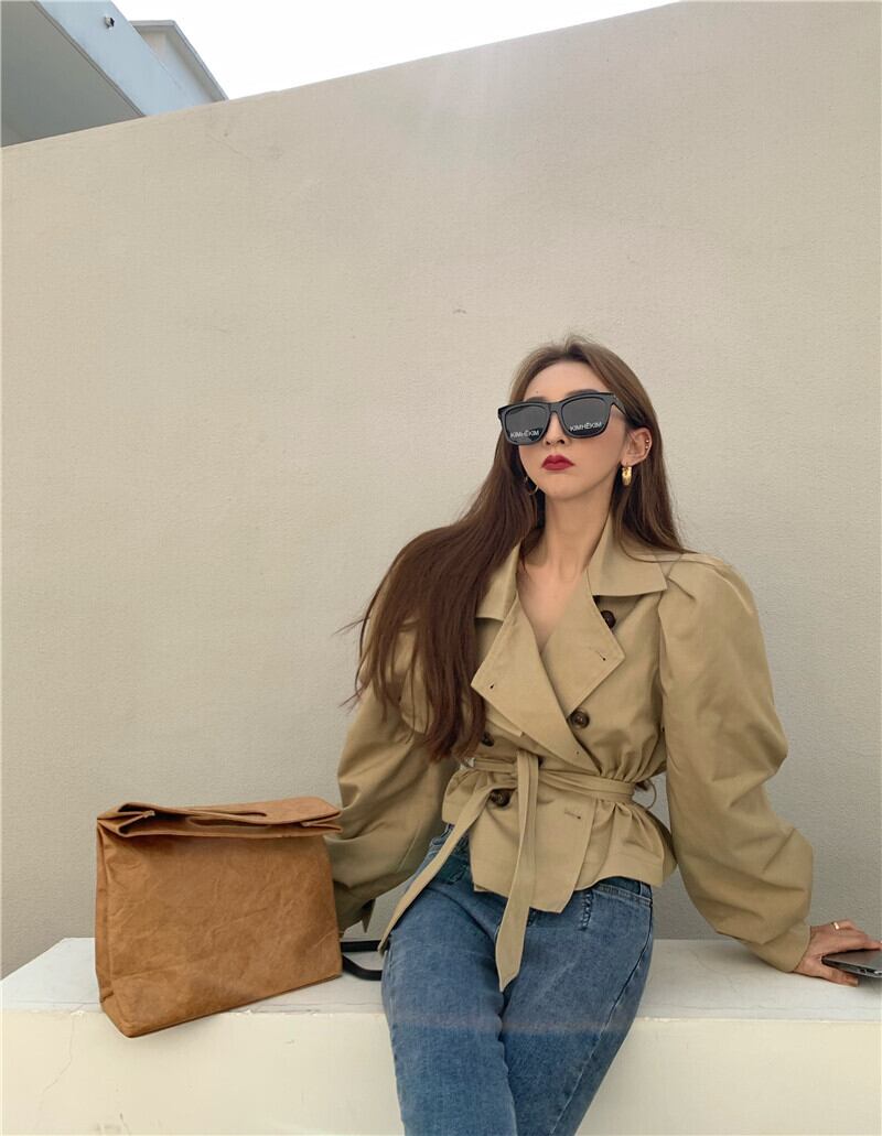 レースアップウエストハンサムスリムショートウインドブレーカージャケット女性2020年秋新作スモール気質カジュアルジャケット ブラックストロベリース60903271678