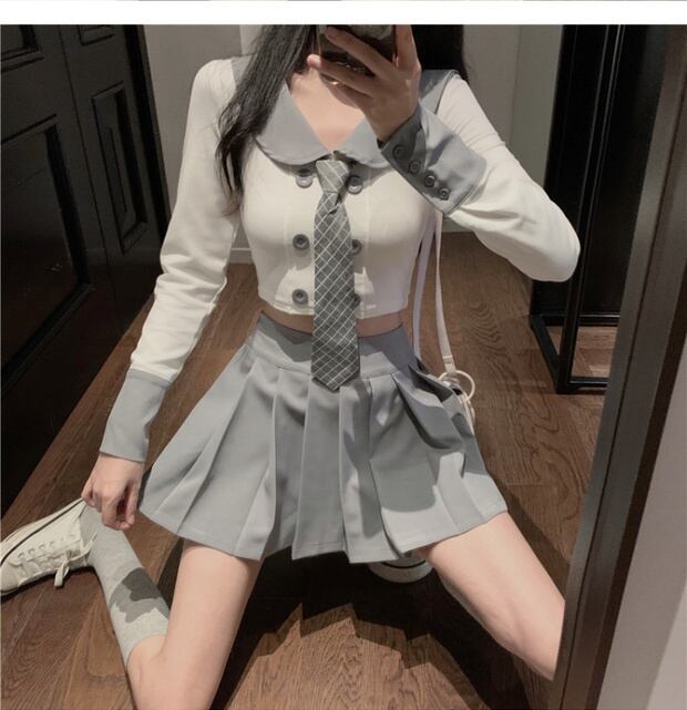 ネクタイライトおなじみのカレッジスタイルのJKプリーツスカートスーツ秋のトップ2020新しい気質の女神ファンツーピーススーツ ブラックストロベリース42883549906