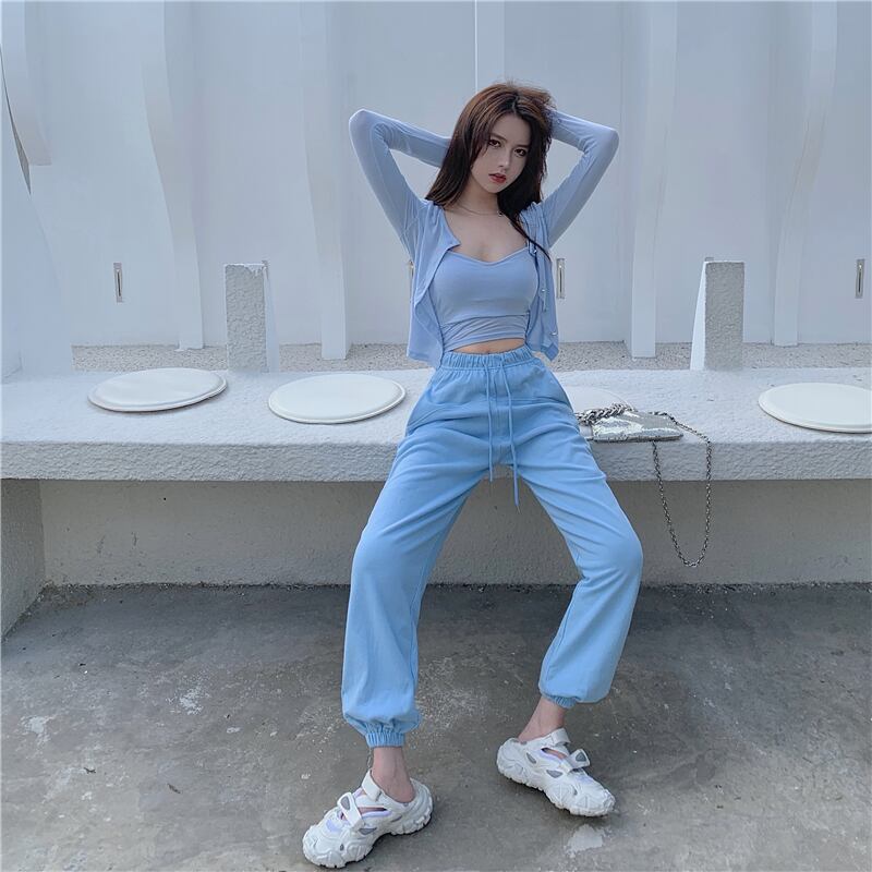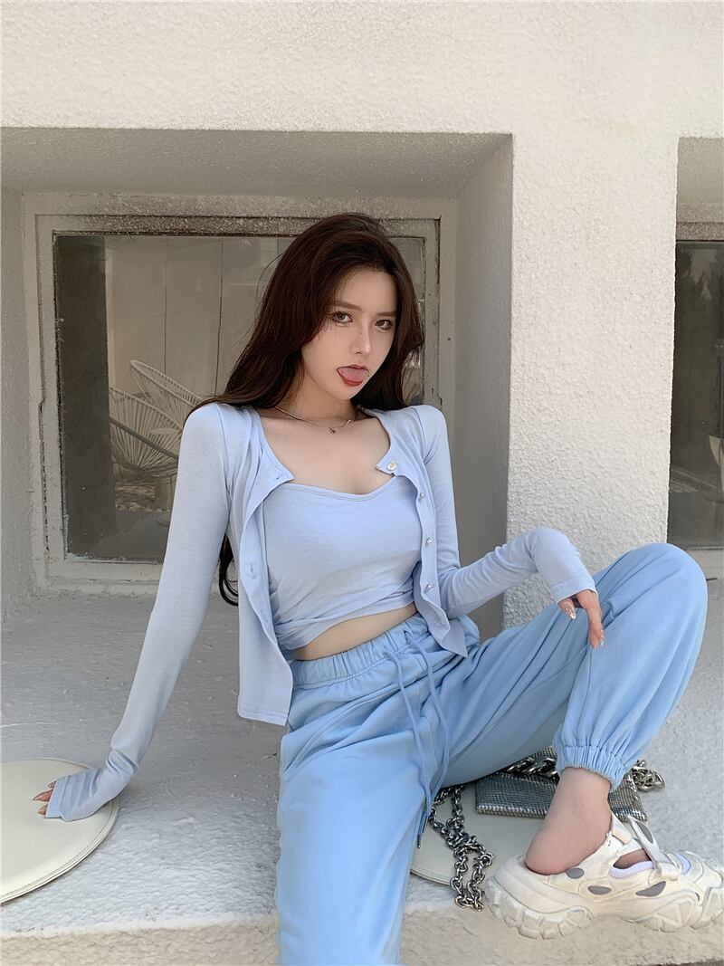 スポーツファッションカジュアルパンツスーツレディース2020年秋ニューエイジリダクションニットジャケットキャミソールツーピーススーツ ブラックストロベリース17691584361