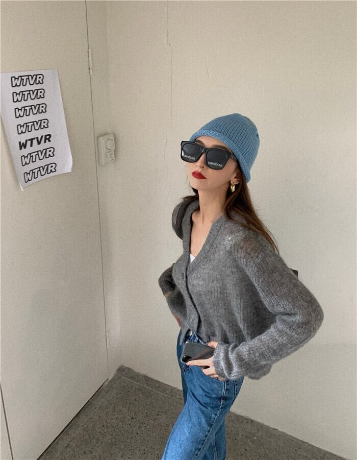 Vネック長袖グレーセータージャケットレディース2020秋新しいレトロアウターセーターカーディガンジャケット ブラックストロベリース38397329353