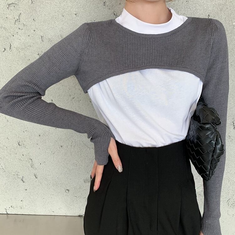 ラウンドネックショートスリムブラック長袖ニットセータートップレディース2020秋新作スタイルのeignセーターブラウス ブラックストロベリース5560781814