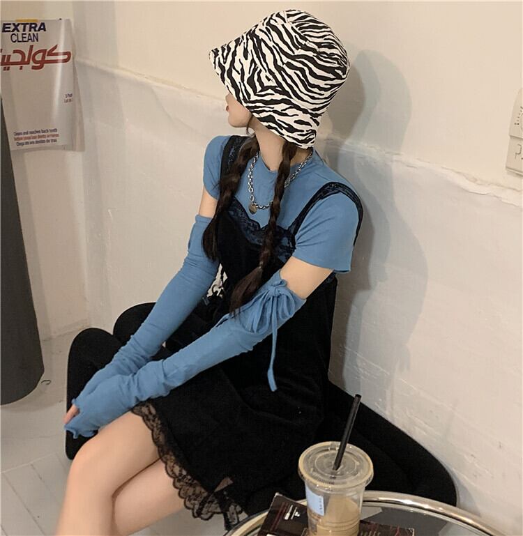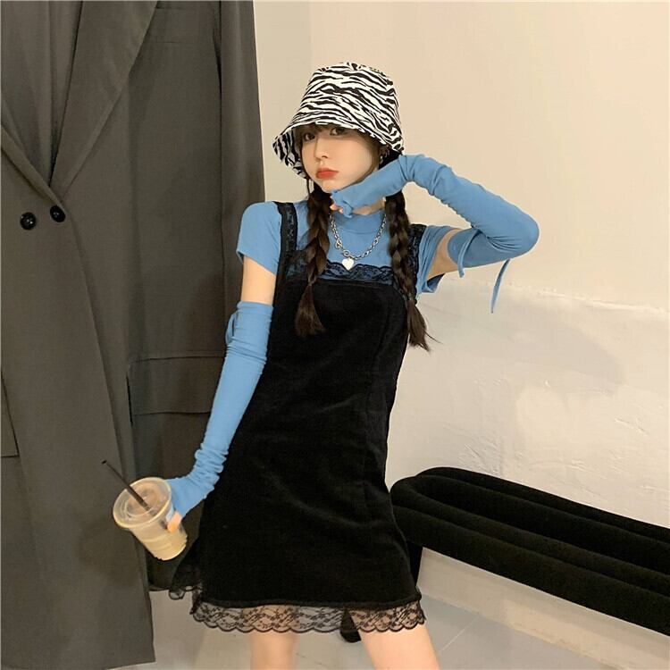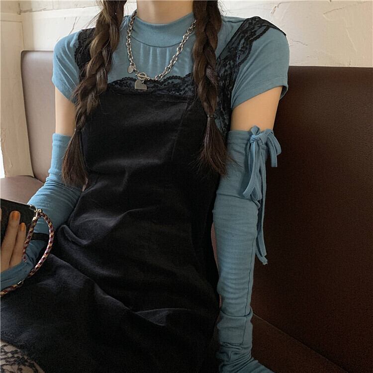 色:青いTシャツ,ドレス