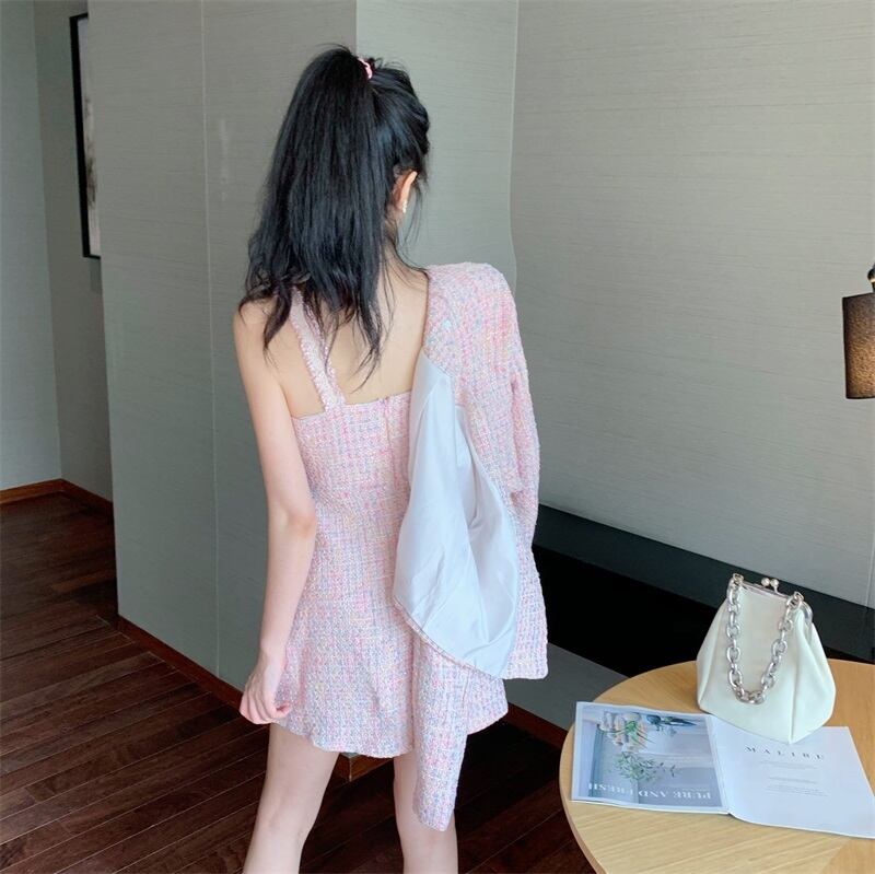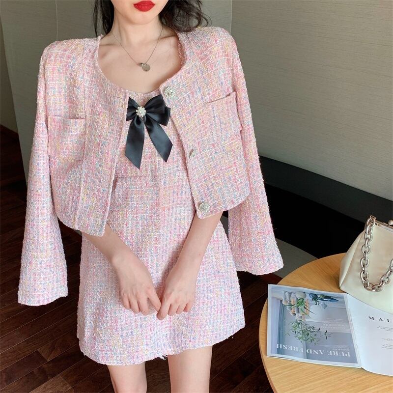 ファッション気質スーツ女性2020年秋新しい洋風ショートコートベストドレスツーピーススーツ ブラックストロベリース87063201850
