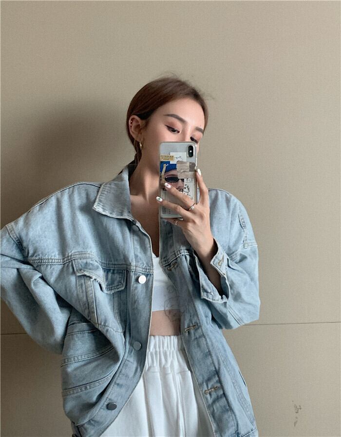 レトロBFウィンドソルトデニムジャケット女性2020年秋オールマッチファッショントップインタイドの新しいルーズバージョン ブラックストロベリース13110298419
