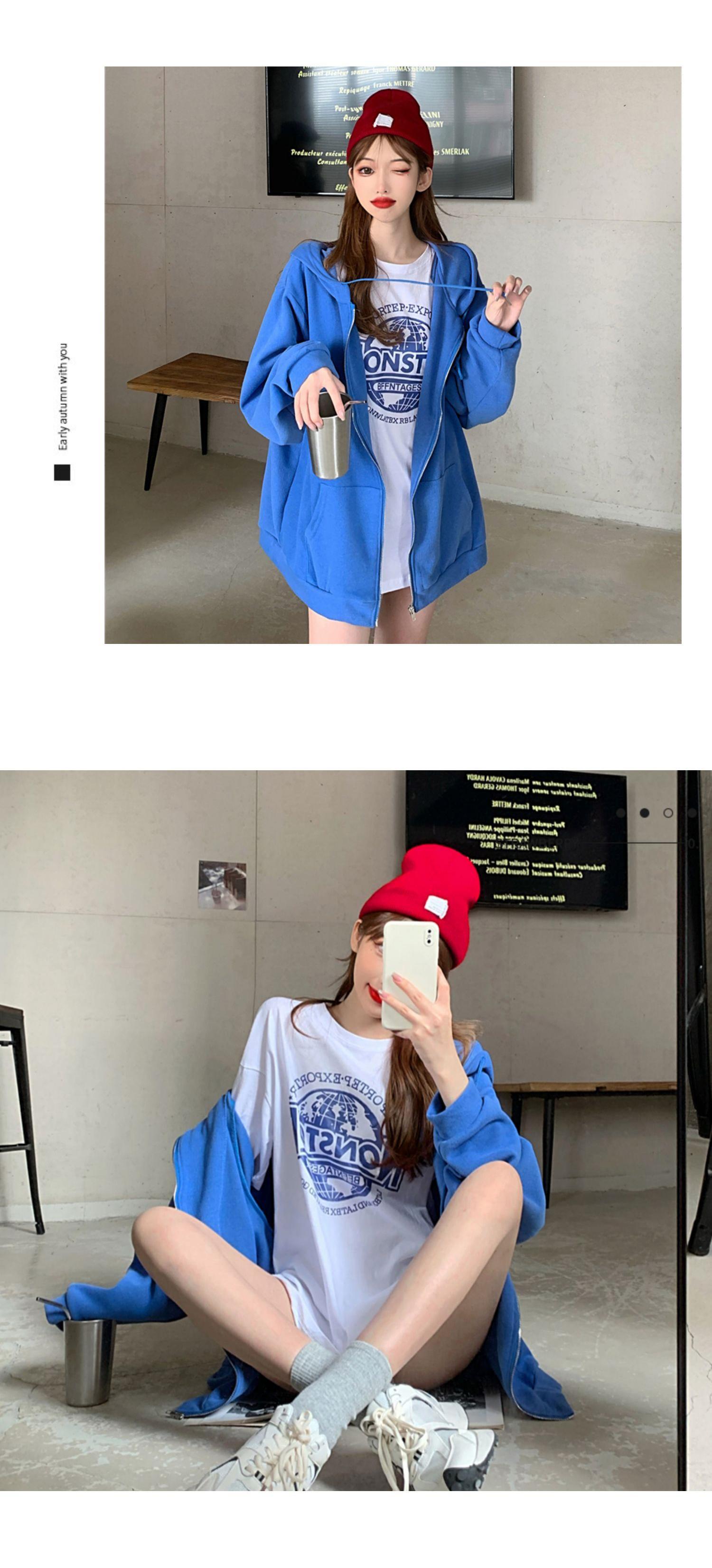 ジッパーフード付きスウェットシャツレディースオータムルースBFレイジーロングスリーブジャケット2020ブルートップ ブラックストロベリース46508277477