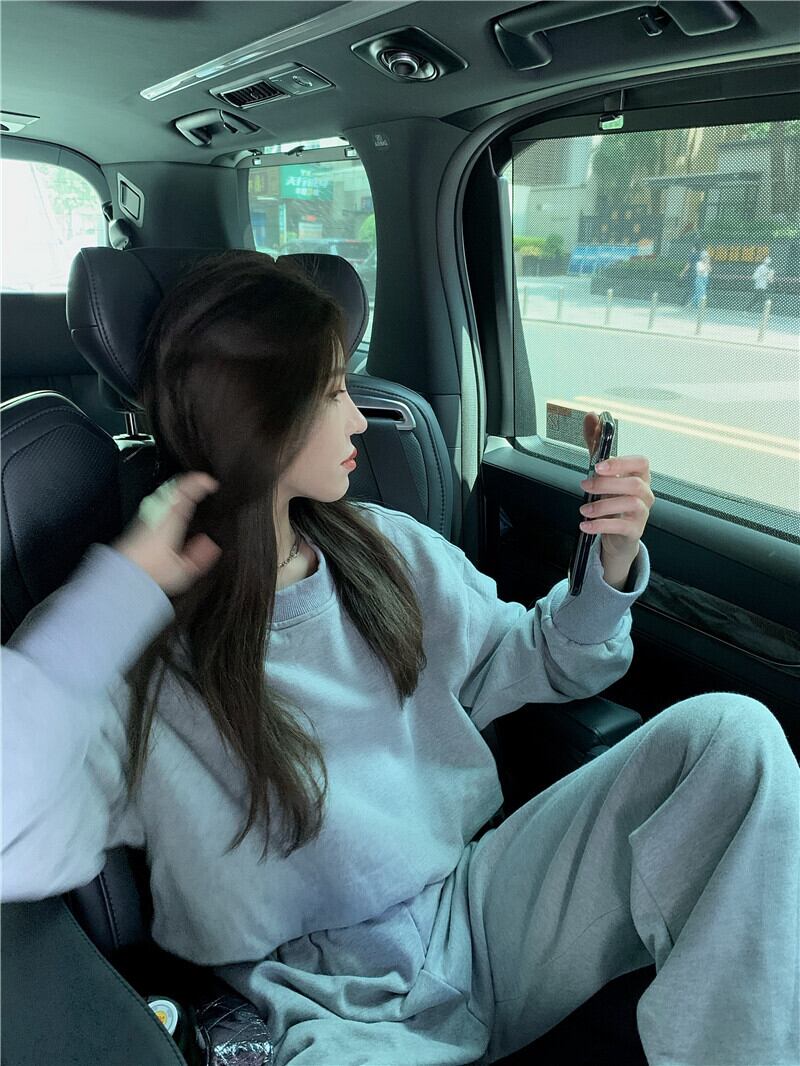 グレーのスポーツスーツ、カジュアルな気質のセーター、ハイウエスト、細いウエストパンツ、2020年秋の女性の新しいツーピーススーツ ブラックストロベリース19537126592