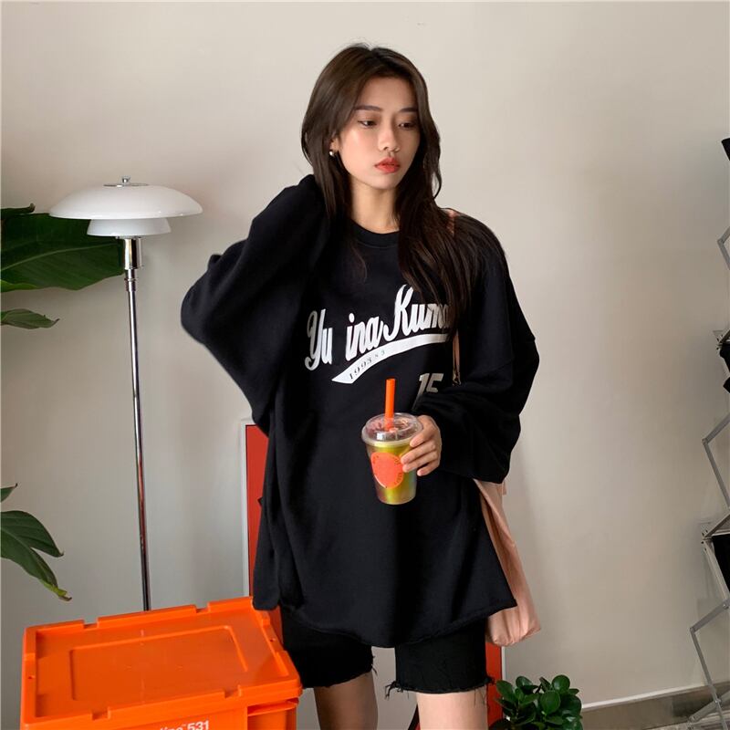 怠惰なスタイルのルーズレタープリント長袖セーター女性の2020年秋新しいブラックインタイドトップ ブラックストロベリース68520480357