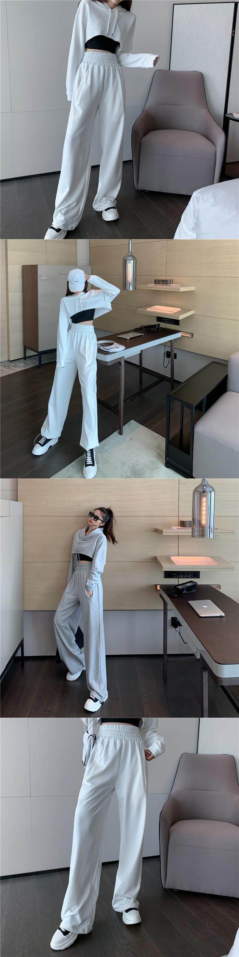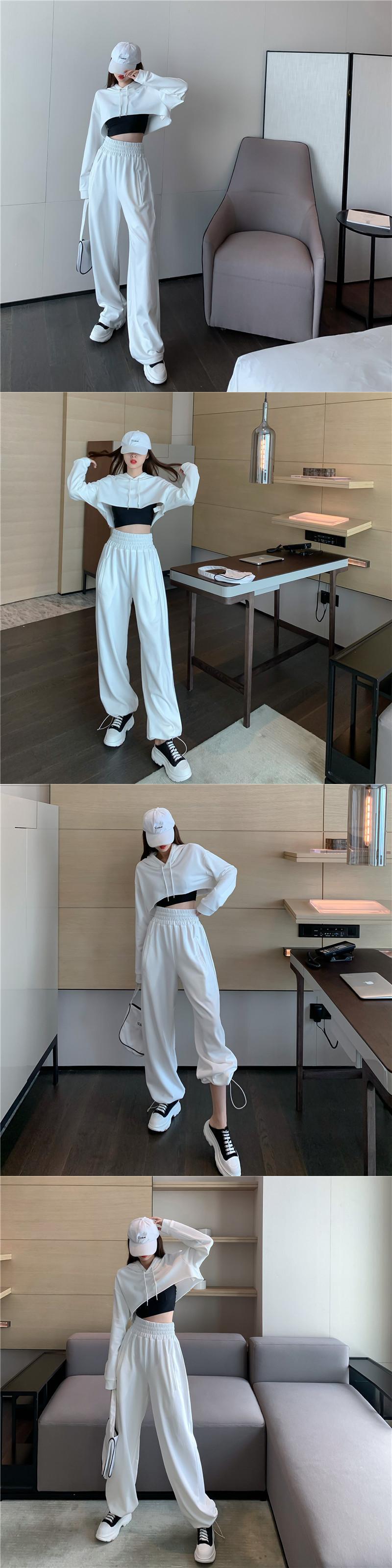 秋のスポーツスタイルのスーツフード付きショートセーターハイウエストワイドレッグパンツ女性2020新しいカジュアルファッションツーピーススーツ ブラックストロベリース57635414762