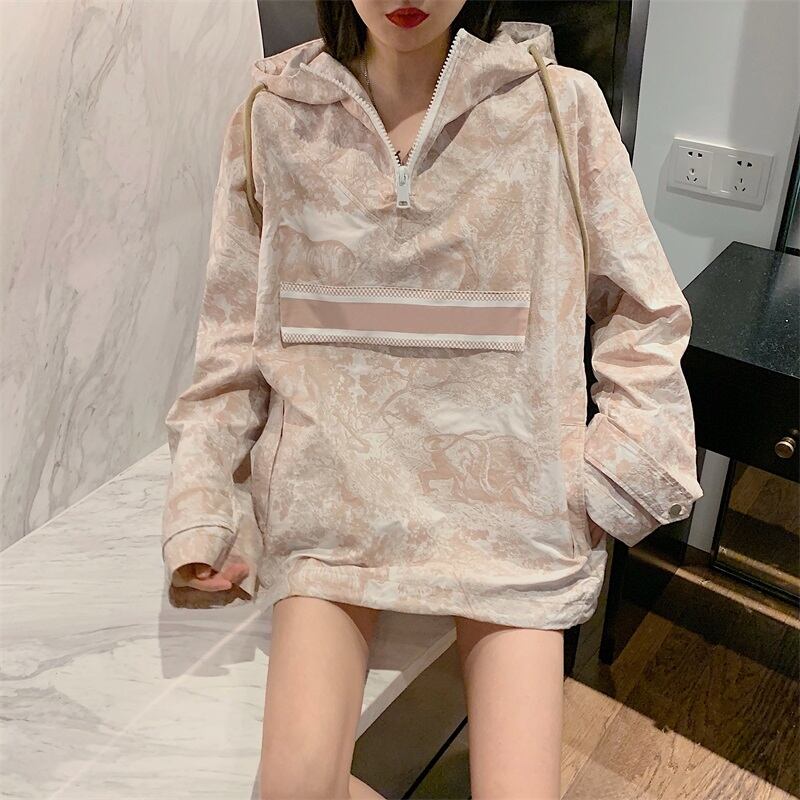 ミッドレングスインタイドジャケットウインドブレーカーレディース2020年秋新しいワイルドルーズフード付きセータージャケット ブラックストロベリース22285968311