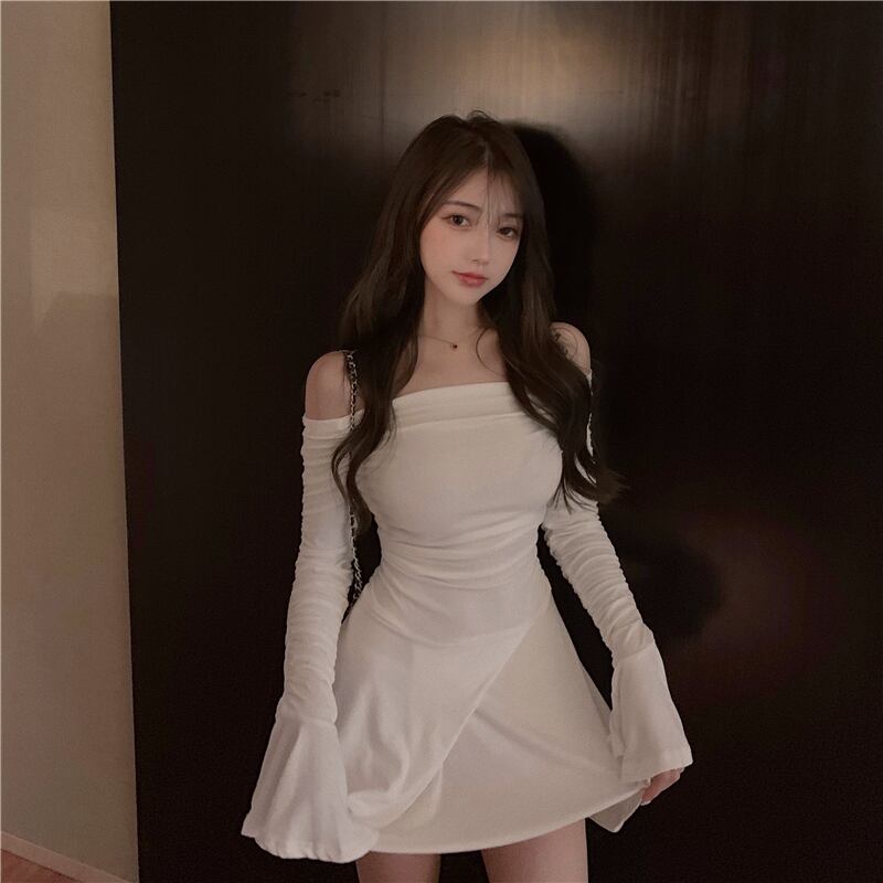 ワンショルダードレスレディース秋長袖タイトフィットヒップショートスカート2020新作ブラックインナーベーススカート ブラックストロベリース52882331881