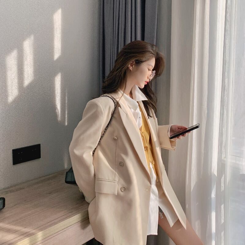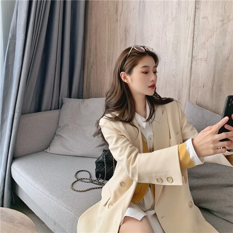オールマッチルーズスタイルスモールスーツジャケットレディース2020秋新作ブリティッシュスタイルロングカジュアルスーツジャケット ブラックストロベリース36096149478