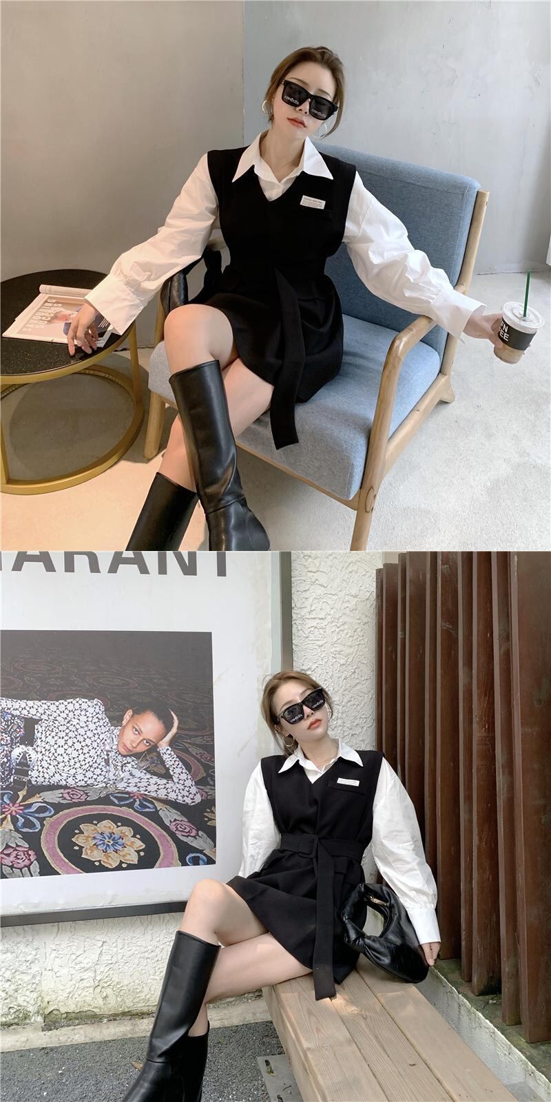 長袖シャツベストドレスツーピース女性秋バージョン2020新しいロイヤルシスター気質スーツ ブラックストロベリース49520680714