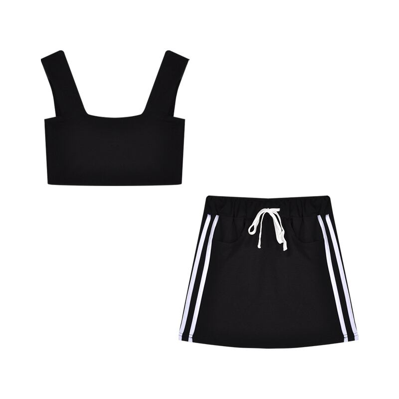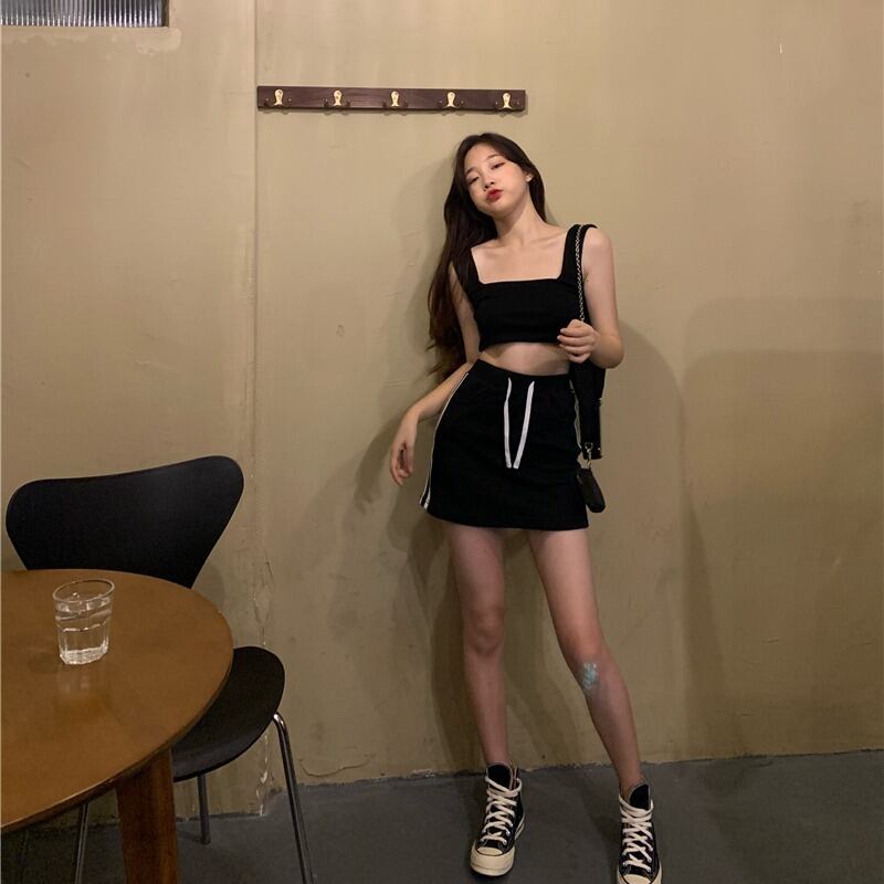 ブラックストライプスカートレディースサマーハイウエスト細いAラインショートスカート2020新しいセクシーバッグヒップスカート ブラックストロベリース5598921082