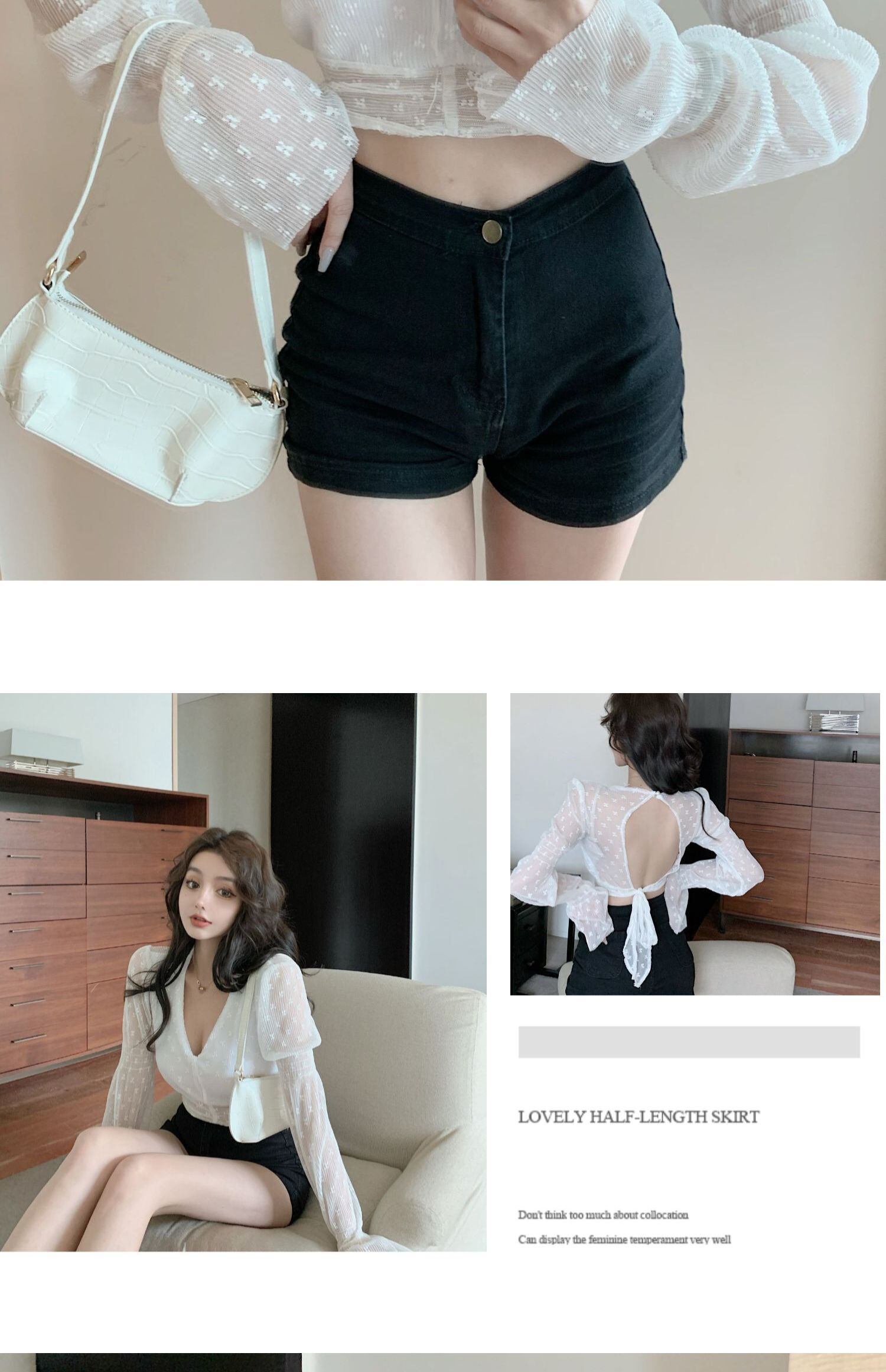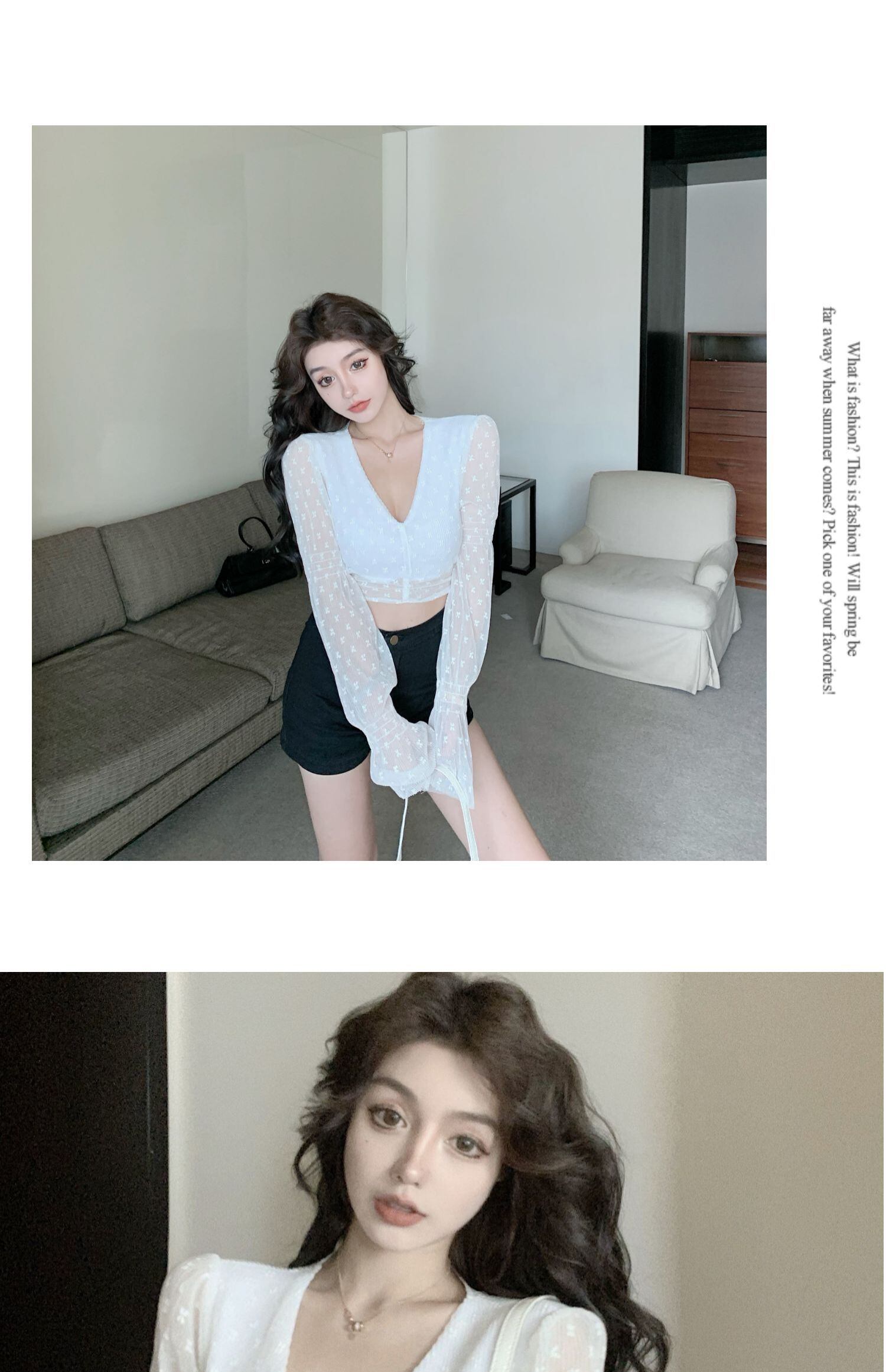 ブラックレースシャツレディース夏気質メッシュブラウス長袖セクシー薄薄ショートセクションボトミングシフォンスモールシャツトップ ブラックストロベリース87173457579