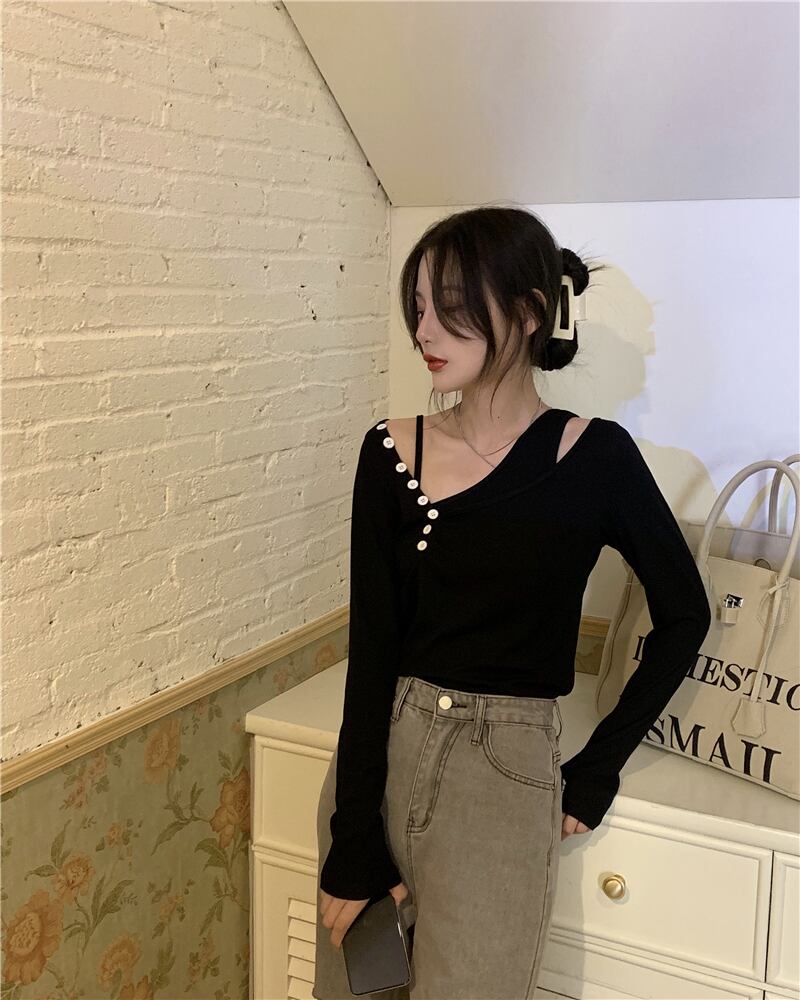 edタイトフィットTシャツブラック長袖インナーボトミングシャツトップス2020年秋新作ツーピースレディース ブラックストロベリース44590573646