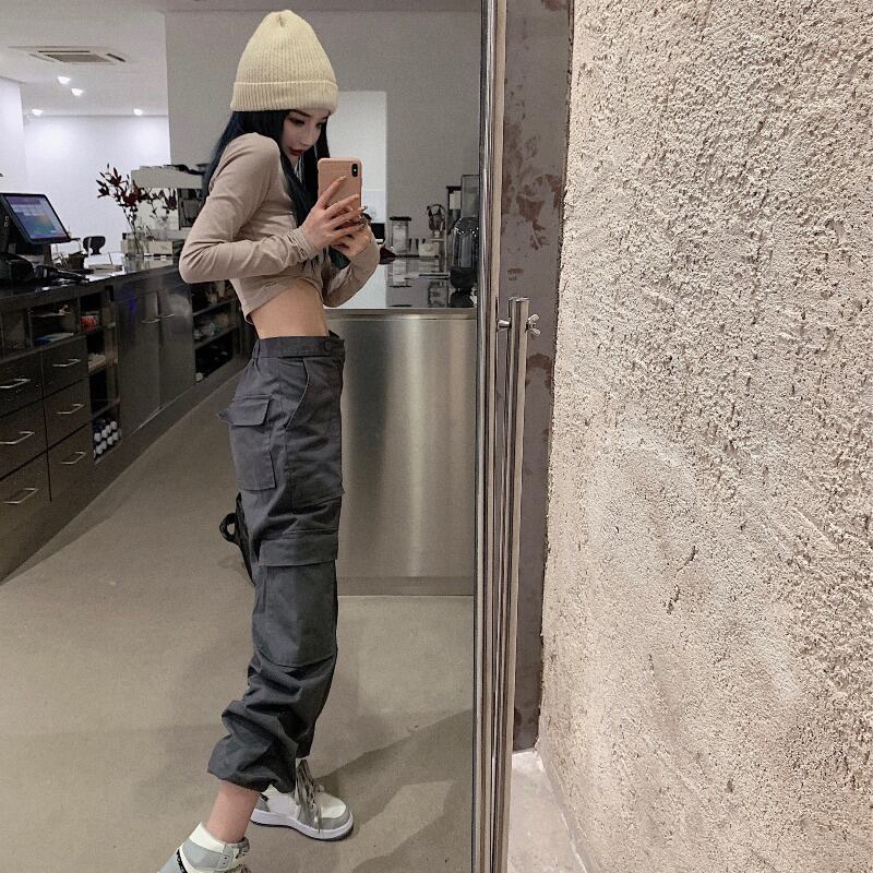 -レギンス付きウエストブラックカジュアルツーリングパンツ、女性の秋のルーズで薄いパンツ ブラックストロベリース49793510530