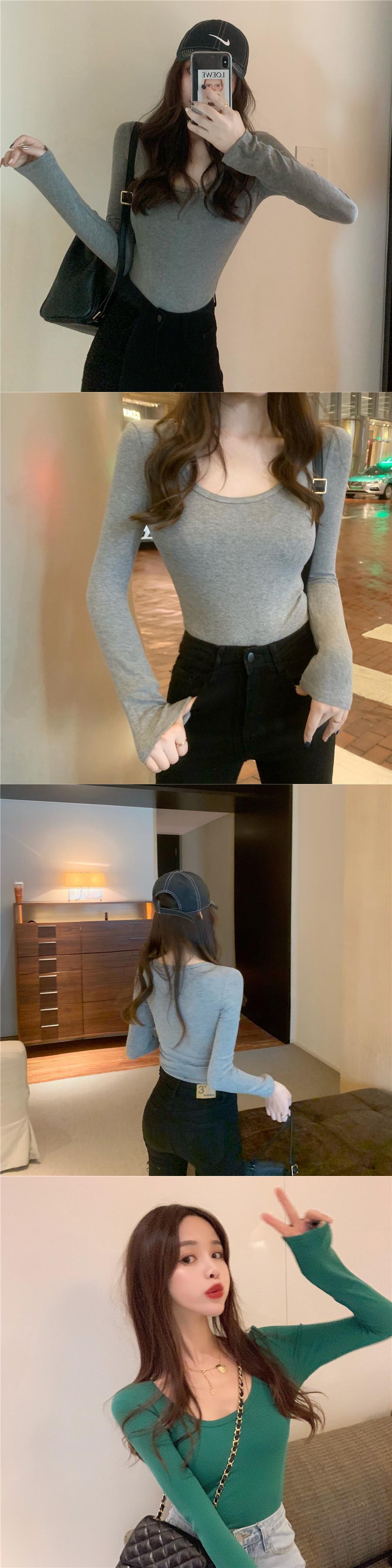 伸縮性のあるタイトフィット長袖グレーインナーベースシャツは、女性の2020年秋新潮ラウンドネックスリムTシャツを上回ります ブラックストロベリース45125397695