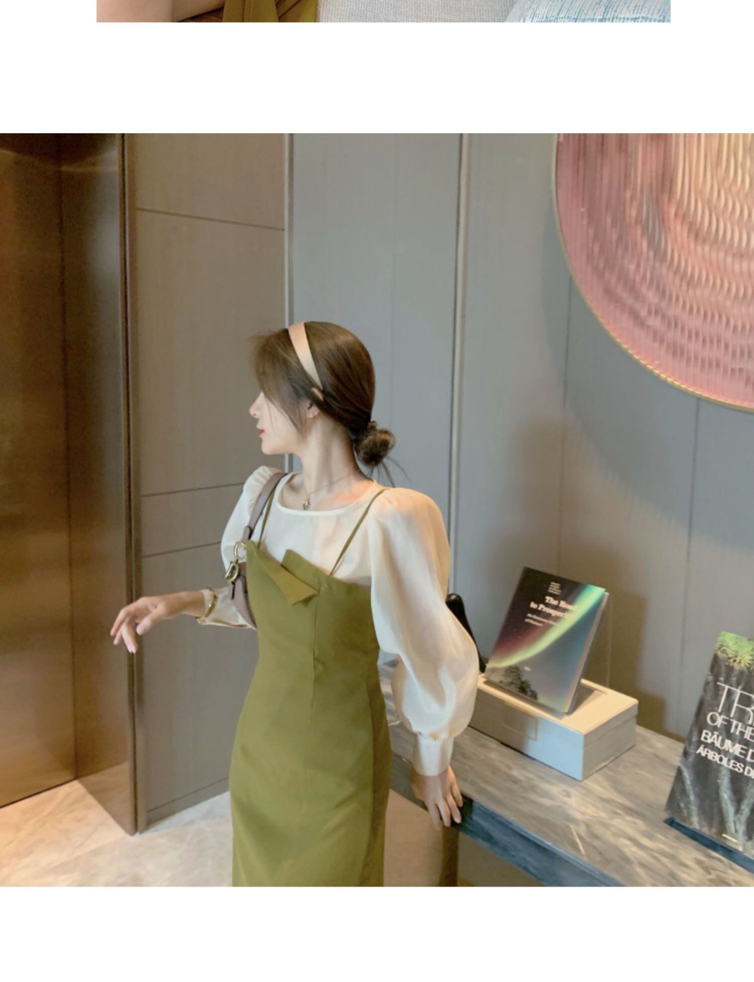 メッシュパフスリーブトップスーツ2020年秋女神ファンスリングスカートライト成熟したツーピースセット ブラックストロベリース63798787051