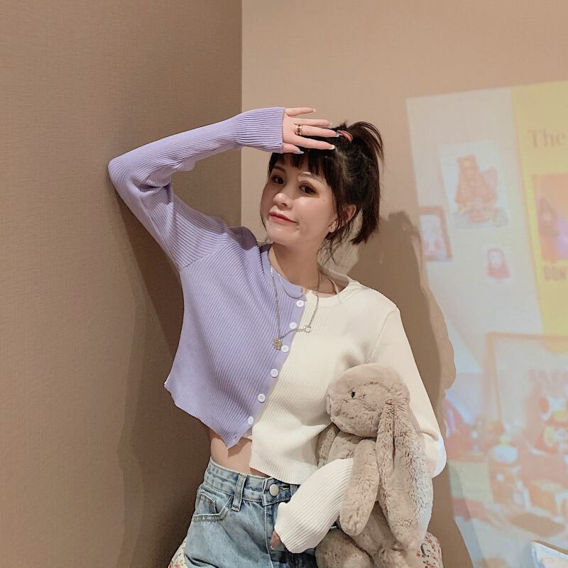 レトロカラーマッチングショートニットスモールカーディガンレディース2020年秋新作オールマッチ年齢を減らす長袖セーターコートトップ ブラックストロベリース6880716106