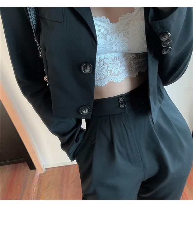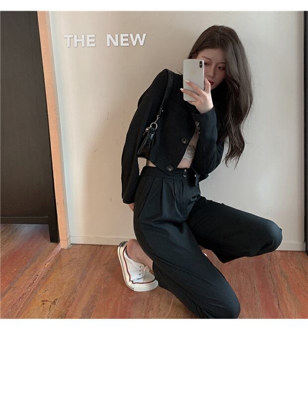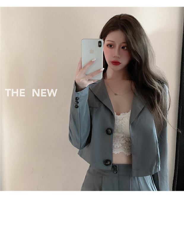 グレーフライドストリートスモールスーツレディース秋薄手スモールスーツ2020新しいショートトップコート ブラックストロベリース91510696021