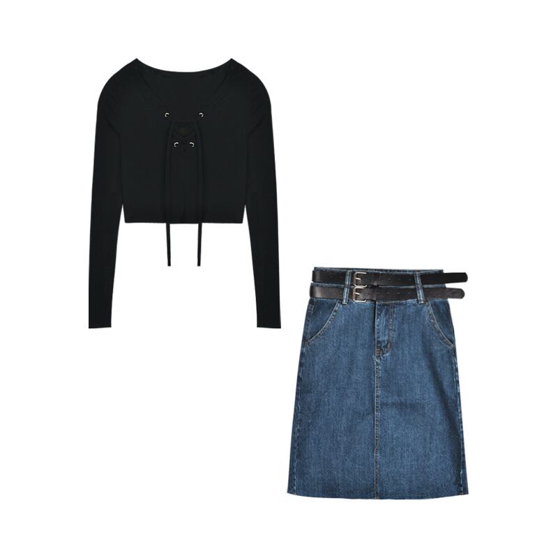 色:ホワイトトップ,ブラックトップ,ライトブルーデニムスカート,ダークブルーのデニムスカート