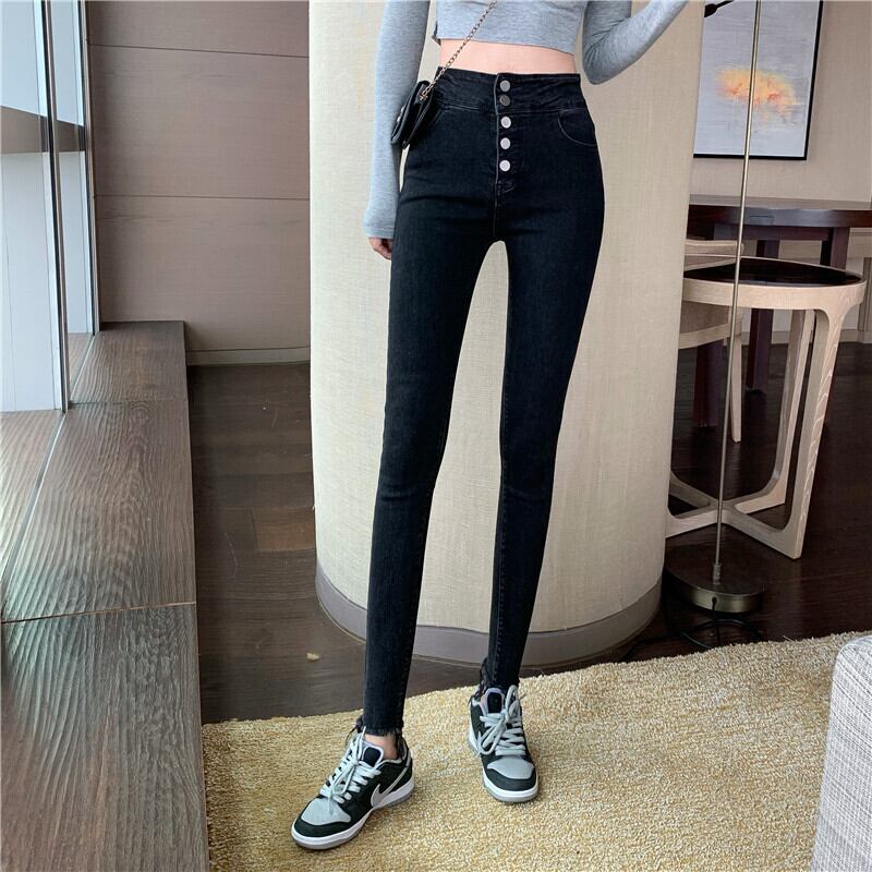 -ウエストのタイトフィットストレッチジーンズ女性の2020年秋新しい黒のパンツ、小さな足のスリムなカジュアルパンツ ブラックストロベリース35187878154