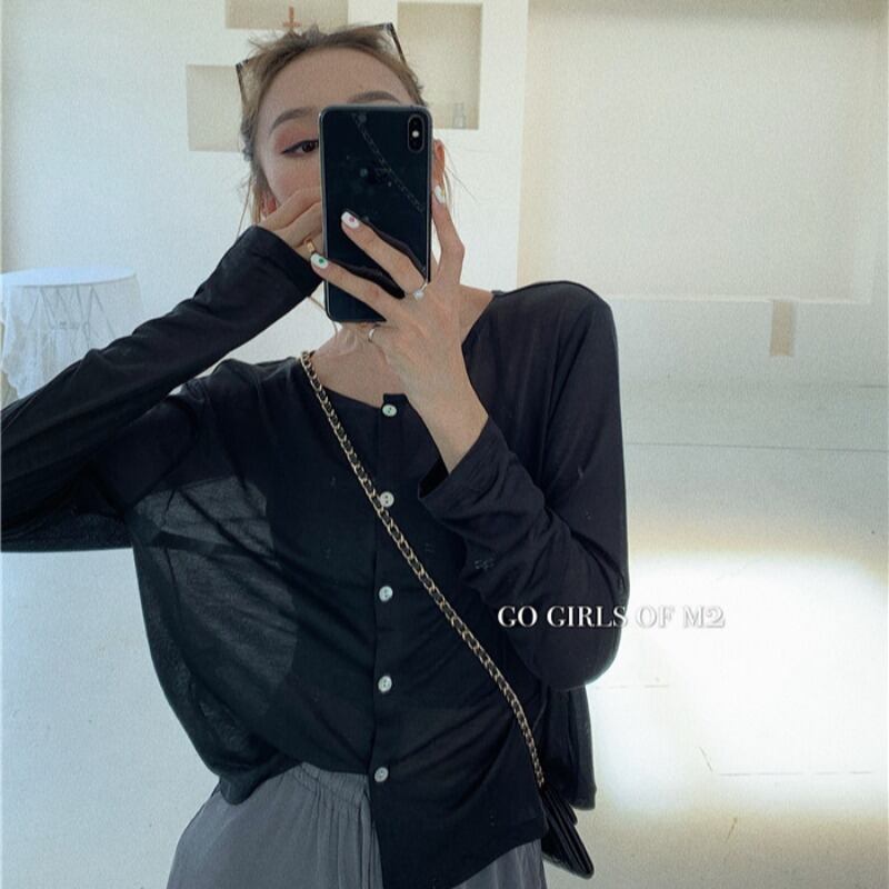ソフトワックスホワイトニット薄手日焼け止めスモールカーディガンレディース初秋ルーズで怠惰な長袖ジャケットショートアウタージャケット ブラックストロベリース98923850671