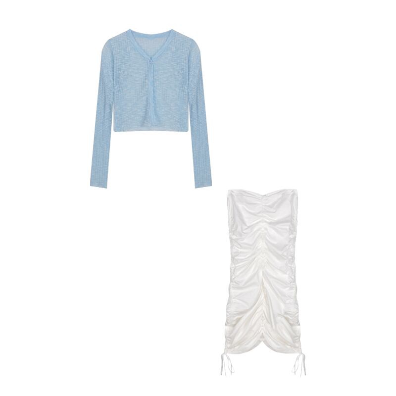 ホワイトチューブトップドレス女性秋タイトフィットバッグヒップ巾着プリーツスカート2020新しいベーススカート ブラックストロベリース63254964865