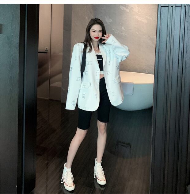 ホワイトフライドストリートスモールスーツレディース初秋のデザインセンスプリントシンスーツ2020ニューニッチジャケットジャケット ブラックストロベリース36868073736
