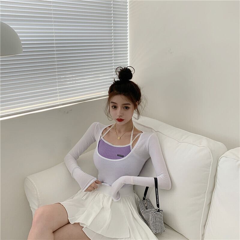 ホワイトタイトフィット長袖Tシャツレディース秋スリムスリミングボトミングシャツ2020新しいショートインナースタイルトップス ブラックストロベリース14191009769