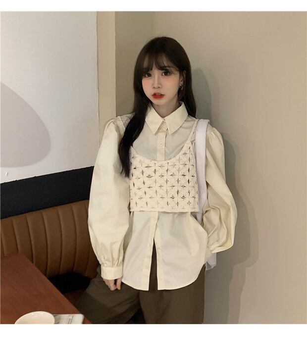香港スタイルのレトロな白いパフスリーブシャツ女性の初秋の長袖ルーズシャツジャケットデザインニッチトップス ブラックストロベリース77722149625