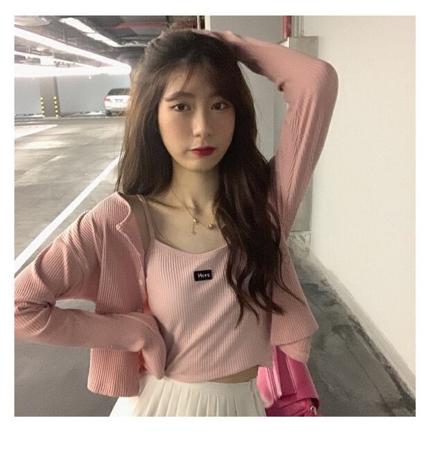 軽い成熟した女神ファンスーツ秋のベストスリング2020新しい長袖カーディガンファッションツーピーススーツ ブラックストロベリース67520265761