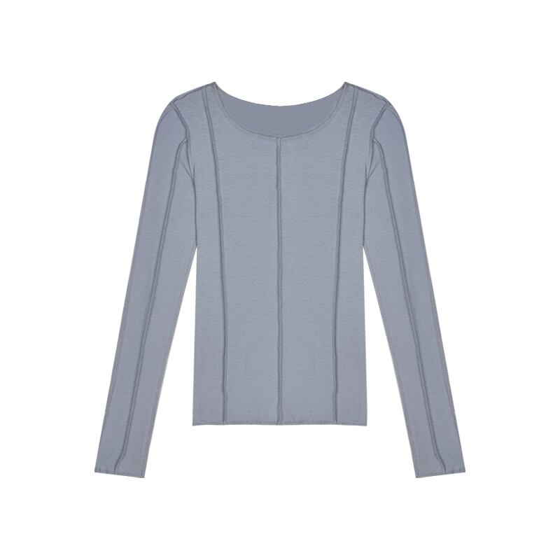 ニッチスリム長袖ニットTシャツレディース2020秋新作タイトフィットインナーベースシャツ ブラックストロベリース49498709001