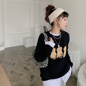 クマ刺繍黒ニットセーター女性秋ルーズ長袖セータージャケット2020新しいアウターウェアプルオーバートップ ブラックストロベリース62427162712