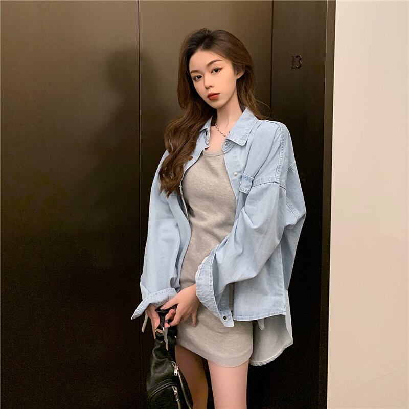 ミッドレングス長袖デニムシャツジャケットレディース2020秋新作オールマッチルーズシャツジャケット ブラックストロベリース29560313502