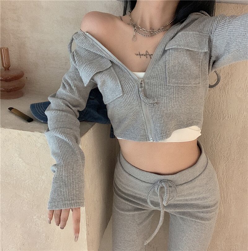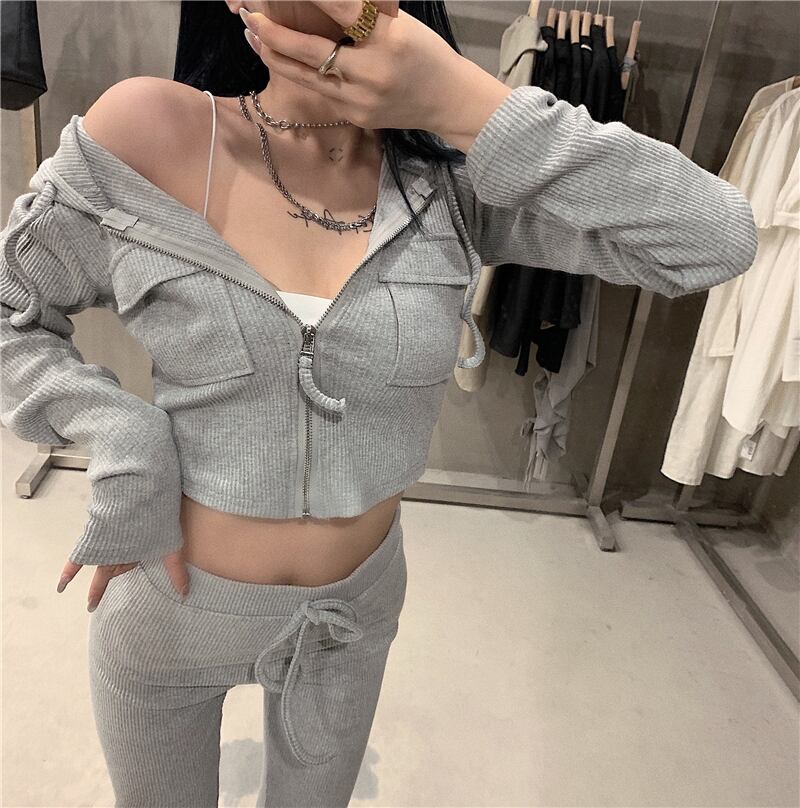 スリムフード付きジッパーハイウエストショートスポーツスモールジャケットレディース2020年秋新しいオールマッチグレートップ ブラックストロベリース11508021699