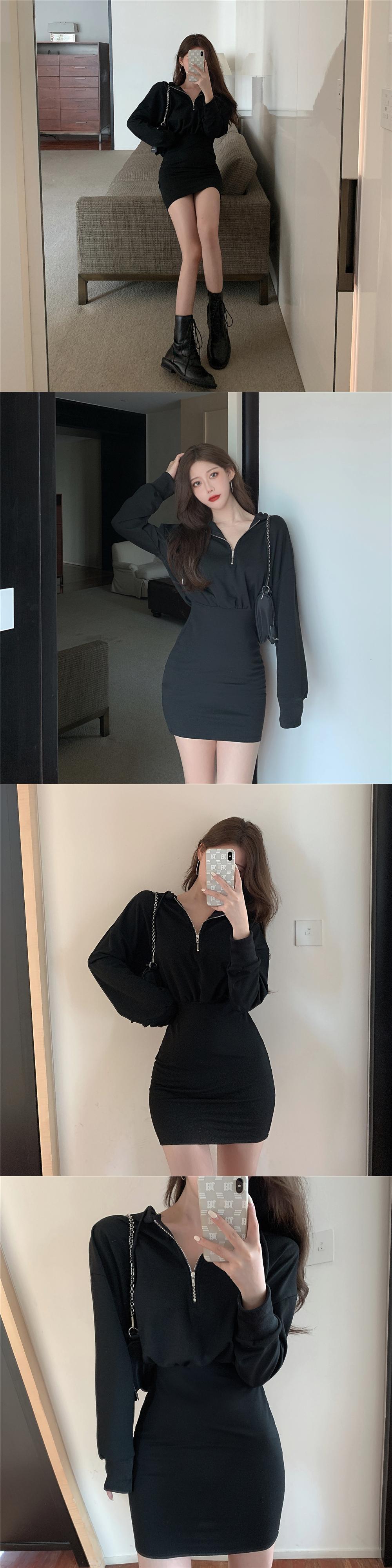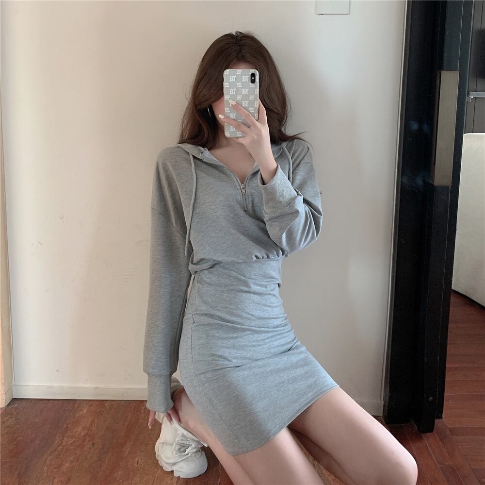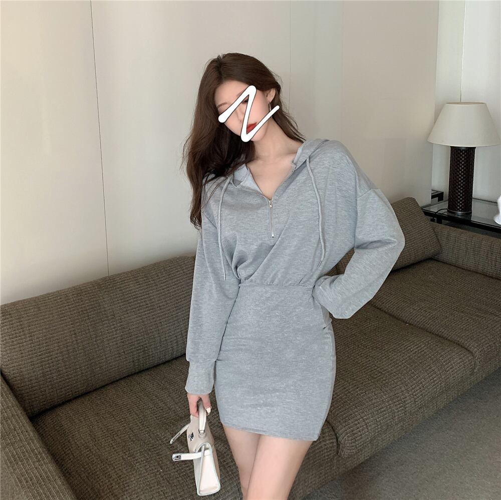 黒のフード付き長袖セータードレス女性秋のバッグヒップタイトなラインスカート2020新しい気質のスカート ブラックストロベリース21563656551