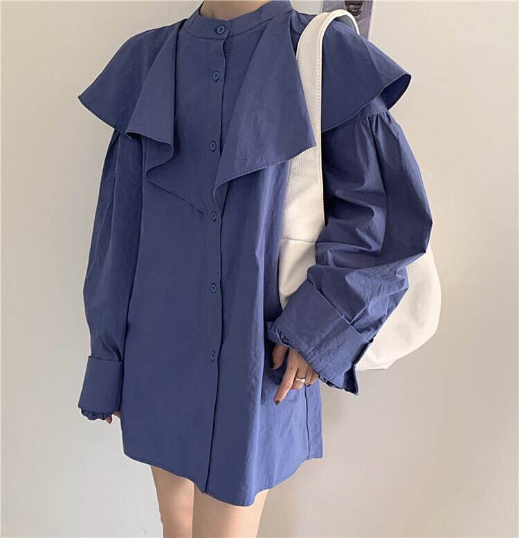 ゆったりとしたミドル丈長袖シャツトップレディース2020年秋新バージョンのブルーニッチシャツ ブラックストロベリース76558864179