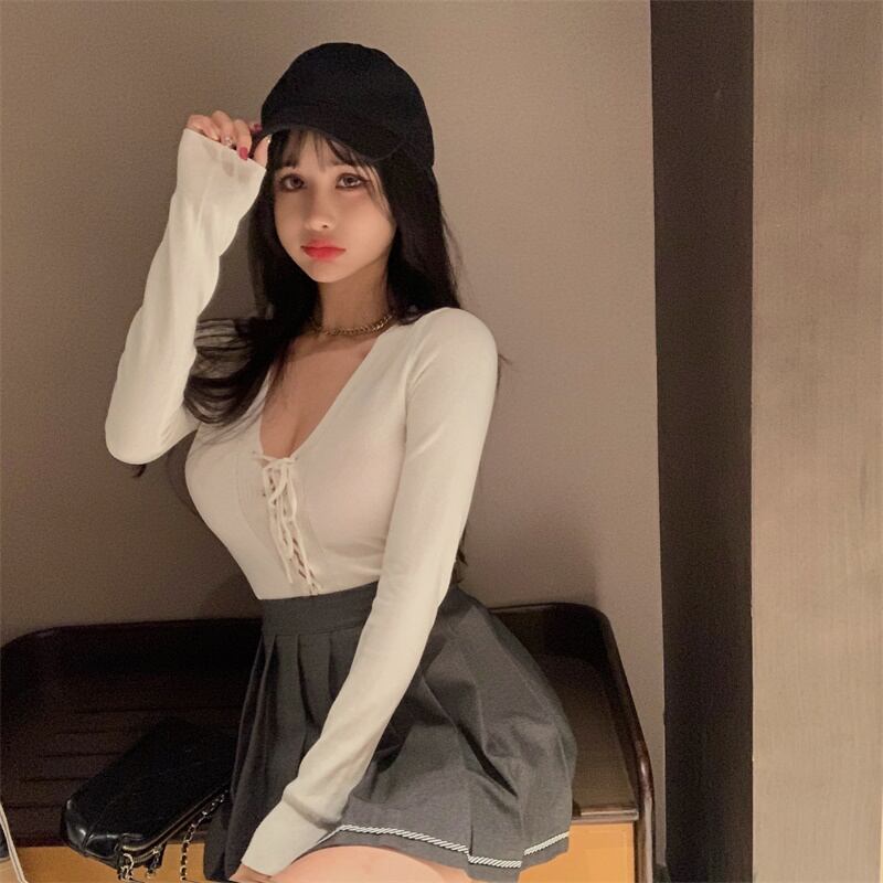 セクシーなインネクタイブラックニットボトミングカーディガンレディース秋スリム長袖セーターショートトップ ブラックストロベリース80801365745