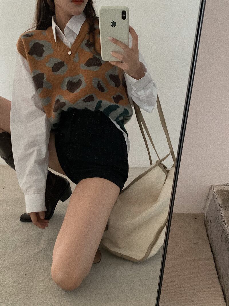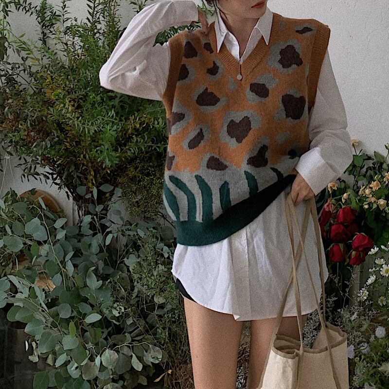 カラーマッチングウエスタンスタイルのeseセーターベスト女性2020年秋新しいVネックルーズアウターニットセーターベストチョッキ ブラックストロベリース78057860944
