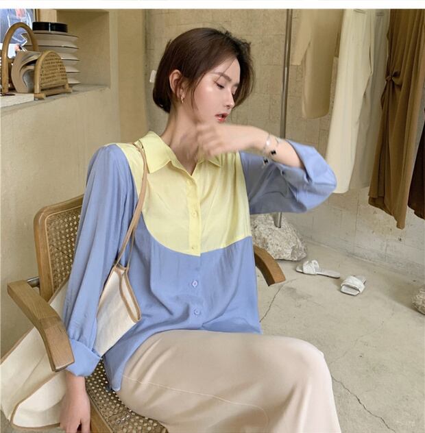 対照的なカラーステッチ香港スタイルルーズ長袖シャツ女性の2020年初秋新しいシャツデザインセンスニッチブルートップ ブラックストロベリース25316038075
