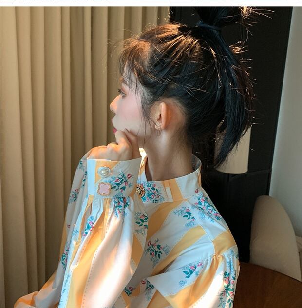 花柄縦縞薄い日焼け止めシャツレディース秋香港スタイルレトロシャツデザインニッチトップ ブラックストロベリース94815007804