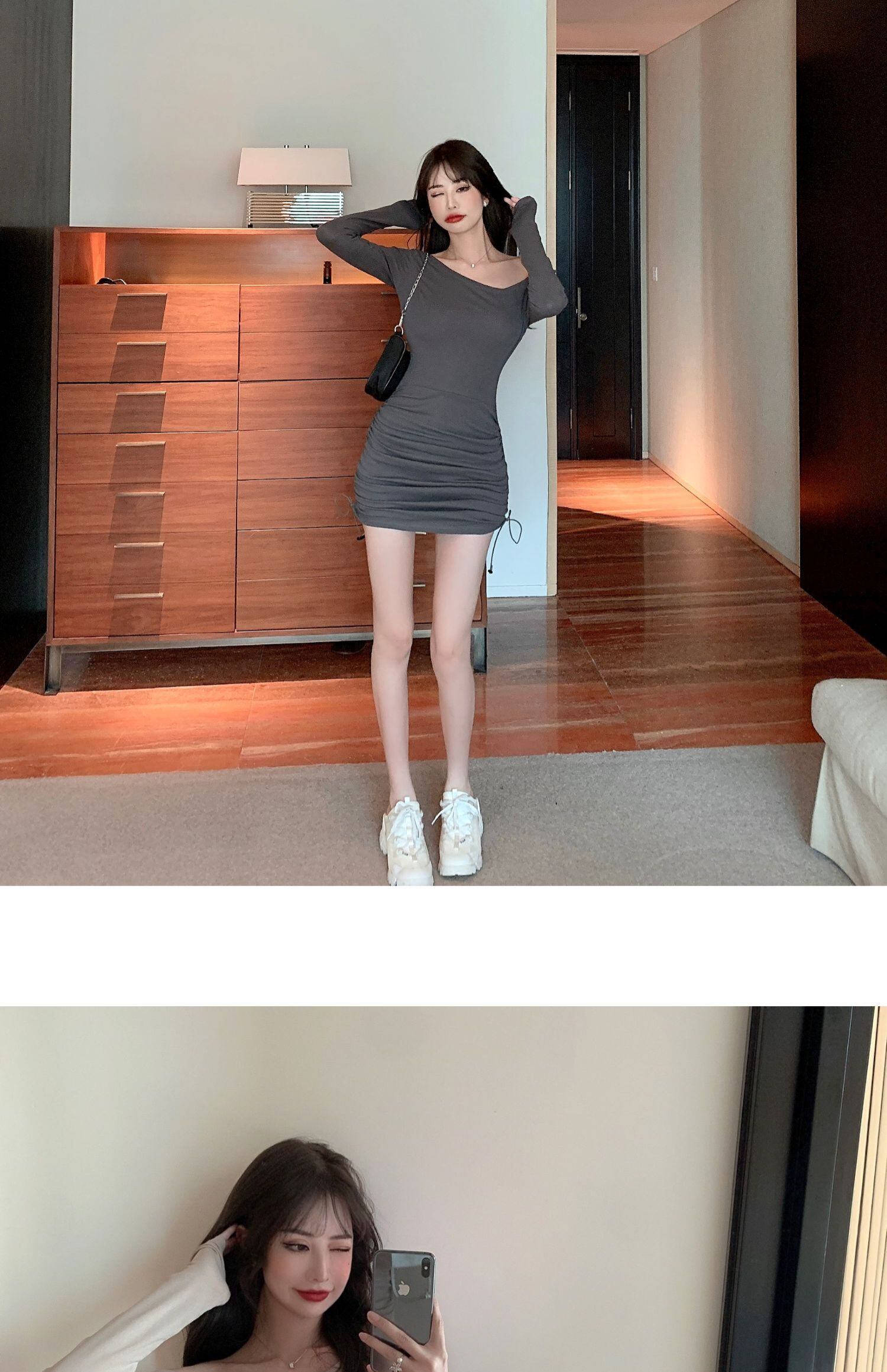 オフショルダーのセクシーな長袖ドレスの女性2020年秋新しいタイトフィットヒップボトミングショートスカート気質ウエストスカート ブラックストロベリース15199670843